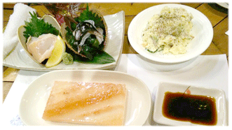 大蛤、鳥貝と、ポテトサラダ