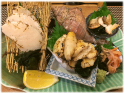 まて貝醤油焼き、ホタテ貝バター焼き、本美之主貝の酒蒸し、